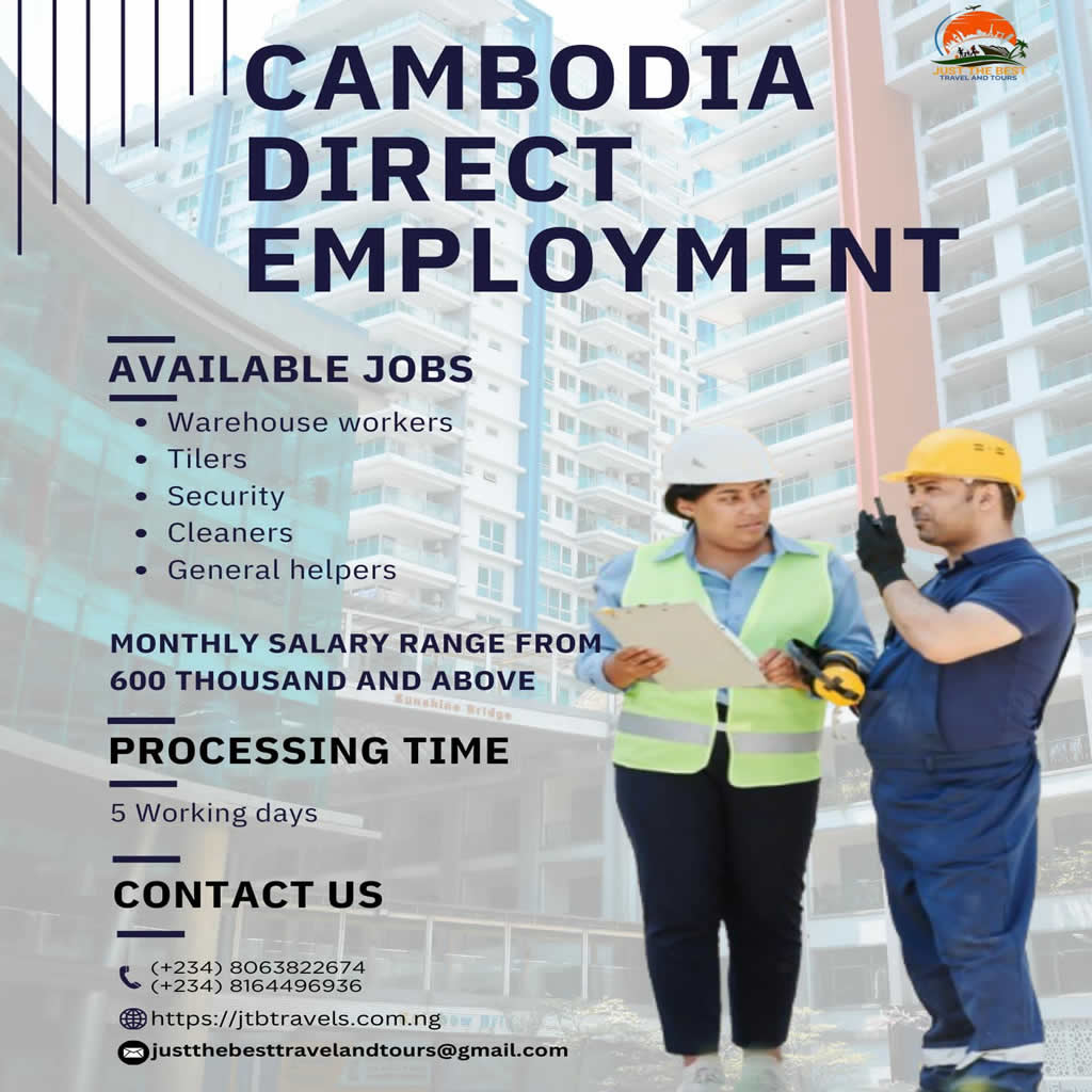 JTB Travels and Tours is offering direct employment opportunities in Cambodia for individuals seeking to build a better future.